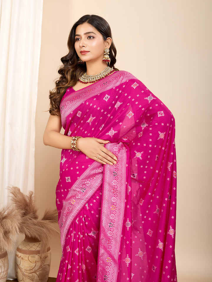 ANANYA Rani Pink Color Pure Silk Saree