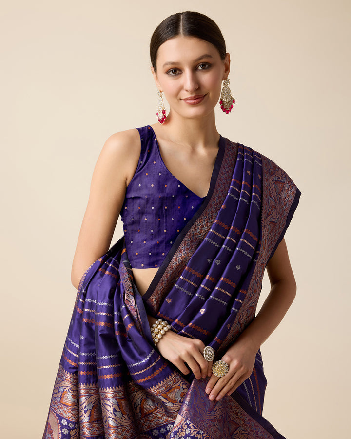 APEXA violet blue Pure Jacquard fabrics with Sona Chandi pure zari work Saree