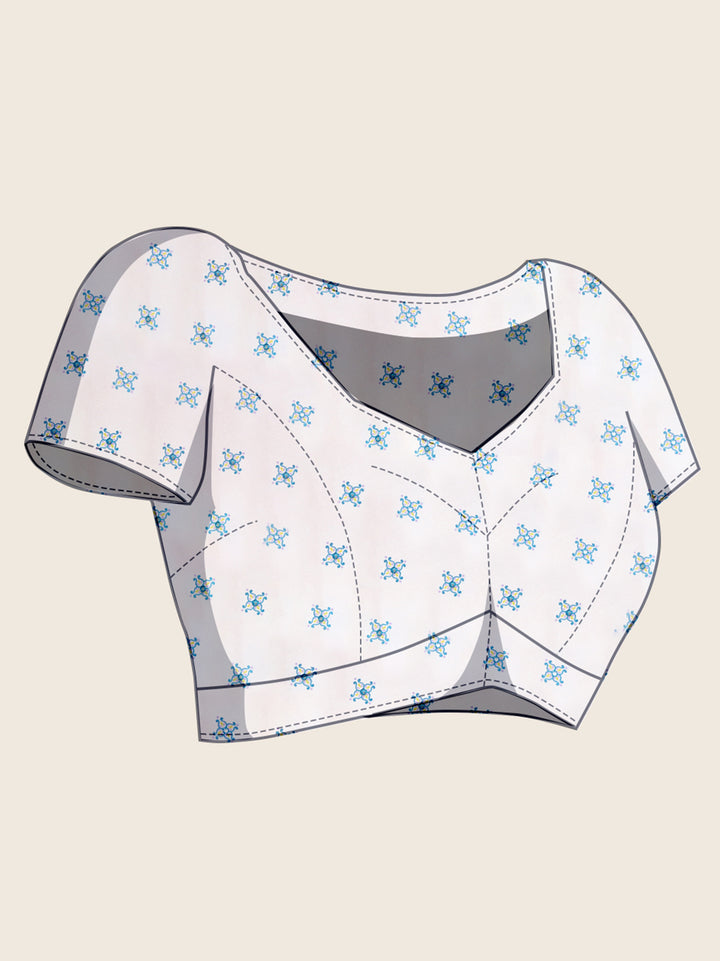 AVYUKTA White-Sky Bule Color Saree With Handwork Touchup All Over