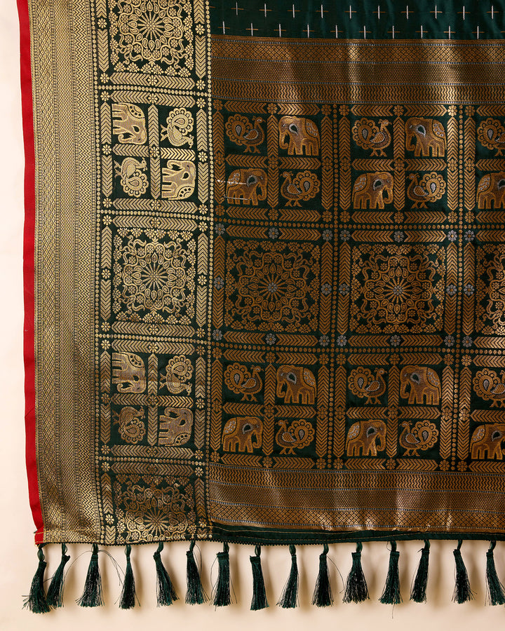 Dark Green Soft Silk & Double Jari Saree