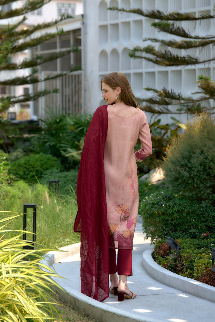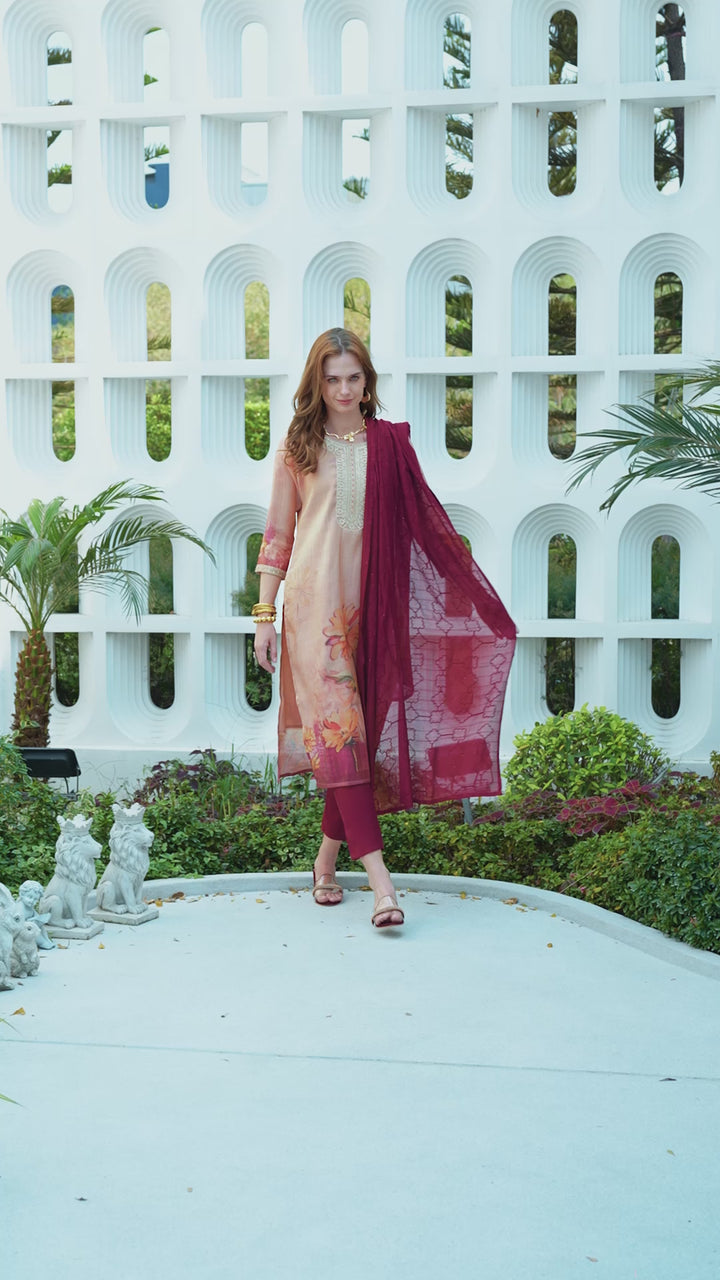 our Straight Kurti Pant Dupatta Set brings you the best of both worlds. Crafted for comfort and styled for versatility, it's a must-have for your summer wardrobe. SKU:- 2009 • Color : Peach • Kurta Fabric : Tissue with floral print and embroidery • Neckline: as per image with embroidery • Sleeves: Three-quarter with embroidered cuffs • Dupatta Fabric: Viscose with embroidery • Pant Fabric: Viscose Size :- S,M,L,XL,XXL,3XL