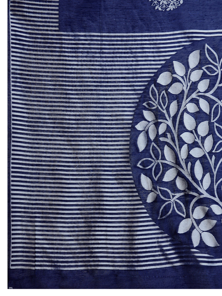 FLOWER BALL Navy Blue And White Soft Silk Saree