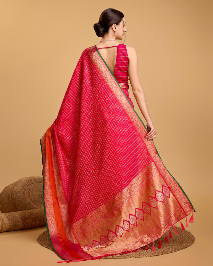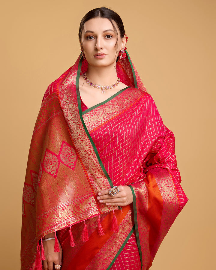 KHUSHI Pink Pure Jacquard fabrics Saree