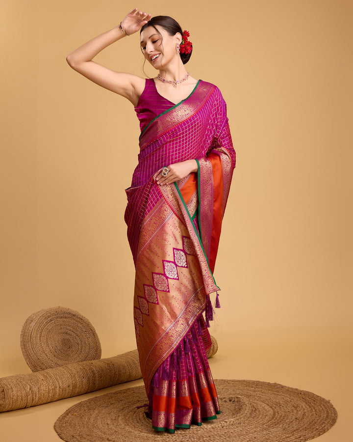 KHUSHI pink with orange detailing Pure Jacquard fabrics Saree