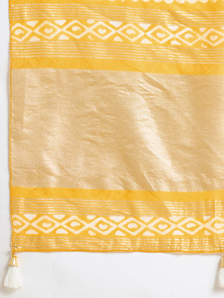 KYARA Yellow Semi Cotton Saree
