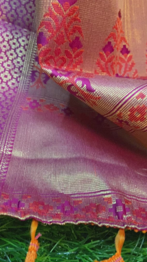 Fabric 🧶:- PURE PATOLA SILK SAREE WITH ALL OVER CONTRAST PATOLA WEAVED WITH CONTRAST MEENAKARI AND RICH PALLU WITH TASSELS ATTACHED