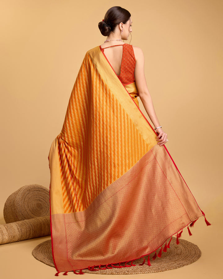 LERI primarily yellow, with accents of red and gold Pure Patola Silk Saree