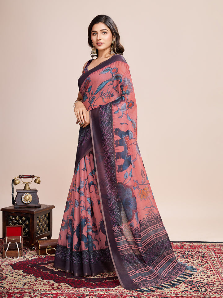 Fabric 🧶:- SEMI LINAN SAREE WITH JARI BORDER ALL OVER SINGL COLOUR PRINTED WITH BLOUSE.