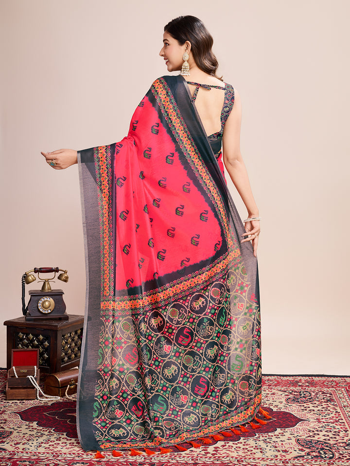Fabric 🧶:- SEMI LINAN SAREE WITH JARI BORDER ALL OVER SINGL COLOUR PRINTED WITH BLOUSE.
