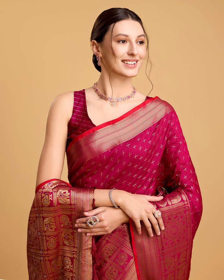 Pink Soft Silk & Double Jari Saree