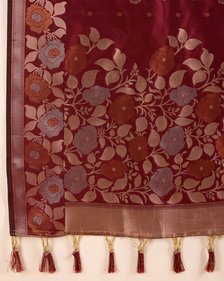 RADHIKA Maroon Pure Jacquard fabrics saree