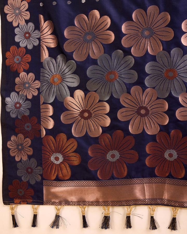 RADHIKA Navy Blue Pure Jacquard fabrics saree