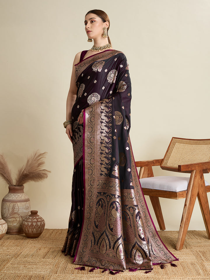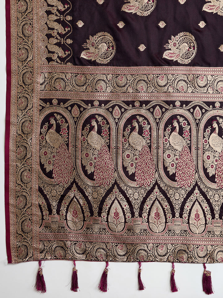 RAJGHARANA Dark Maroon Soft Silk Sarees Premium Two Tone Satin Fabric with Unique Design