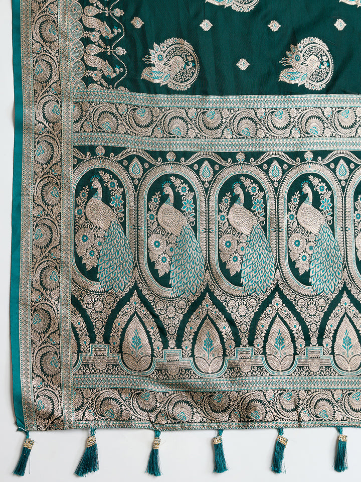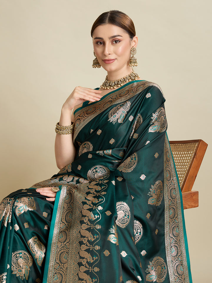 RAJGHARANA Green Soft Silk Sarees Premium Two Tone Satin Fabric with Unique Design