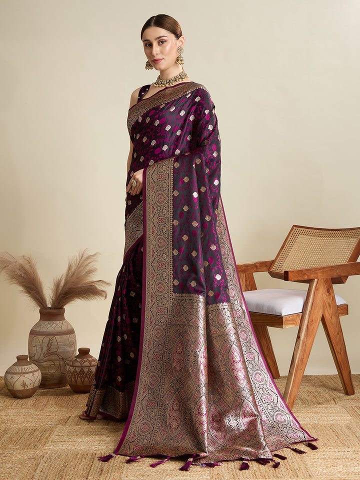 RAJGHARANA Purple Soft Silk Sarees Premium Two Tone Satin Fabric with Unique Designs
