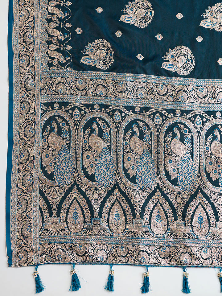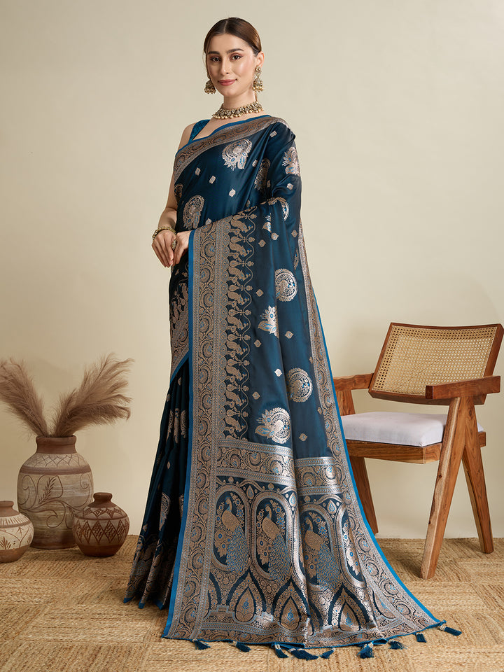 RAJGHARANA shade of blue Soft Silk Premium Two Tone Satin Fabric with Unique DesignSarees