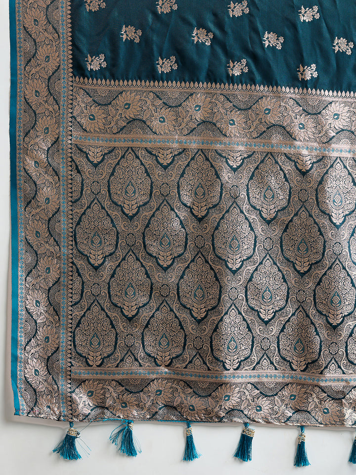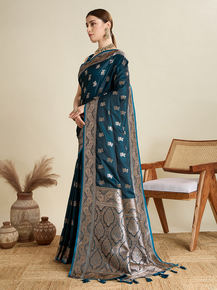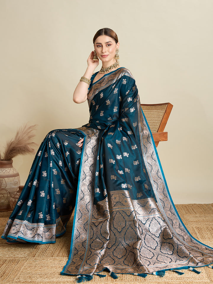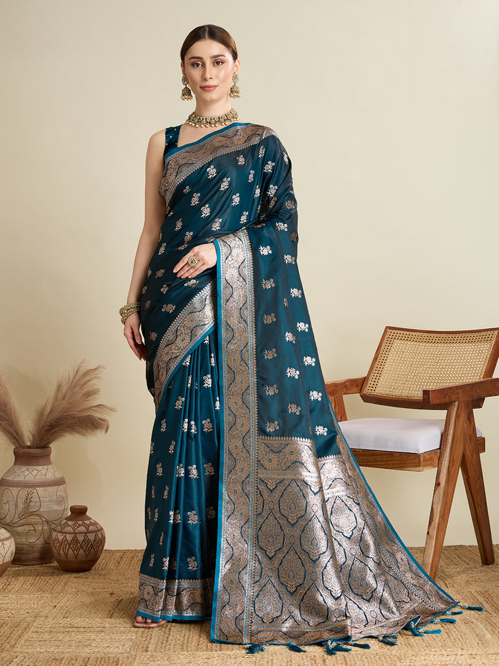 RAJGHARANA Teal Blue Soft Silk Sarees Premium Two Tone Satin Fabric with Unique Designs